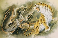 Le tigre est l'éternel rival du dragon, ainsi divers dessins dépeignent un dragon et un tigre livrant une bataille épique. Une expression chinoise souvent utilisée pour décrire ces rivaux d'égale valeur (notamment dans les sports de nos jours) est « le dragon contre le tigre ». Dans les arts martiaux chinois, le « style du dragon » est employé pour décrire des styles de combat plus basés sur la technique, alors que le « style du tigre » est basé sur la force brute.